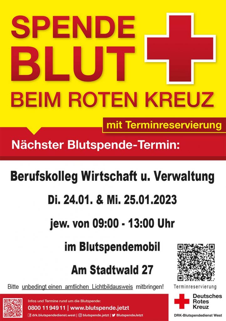 Das Deutsche Rote Kreuz mit Blutspendemobil am Berufskolleg Wirtschaft und Verwaltung